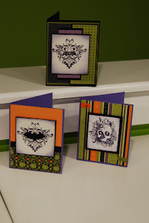 Hi Everyone! Today.. Lu and I were busy. I joined Curves (and Lu renewed her membership). I have decided I need to do it.. I need to feel better about myself. I look at pics of myself and I say.. EEEEK! Speaking of scary, we decided to re organize our paper (again!). Stampin Up has changed their color palette. Once again, I was shuffling this and that.. deleting the retired colors.. I'm so happy it is done. Then, we even had time to make some halloween cards! Yay! So, I thought Id share with ya. :)